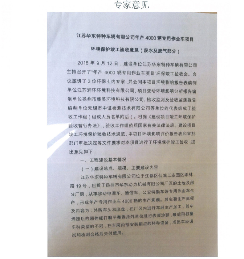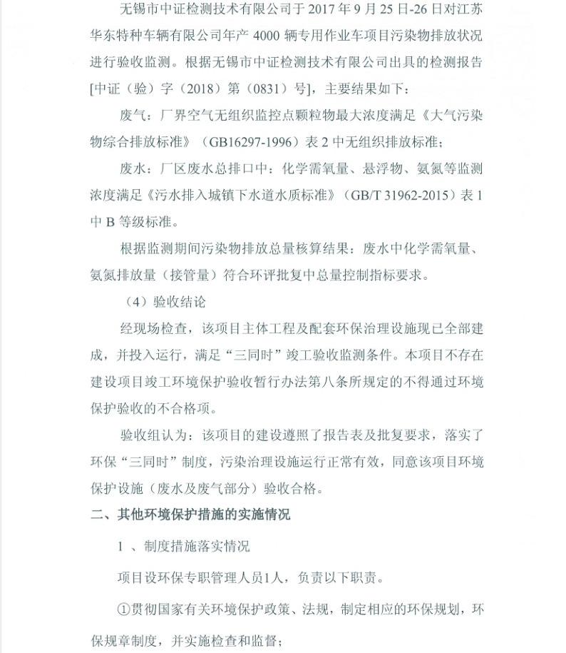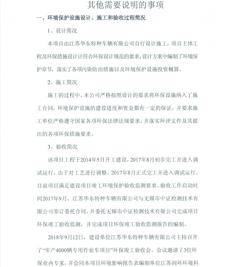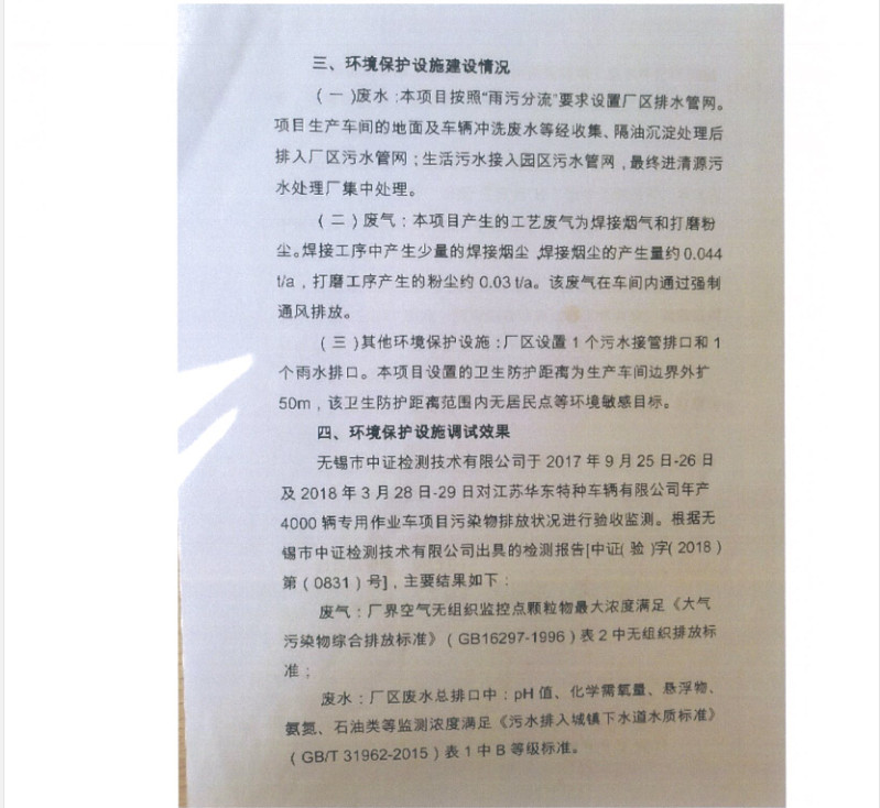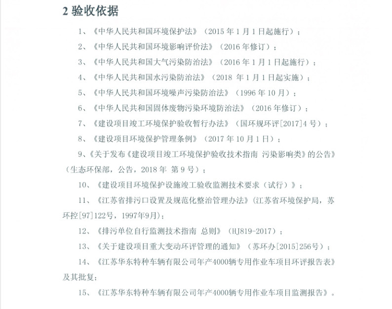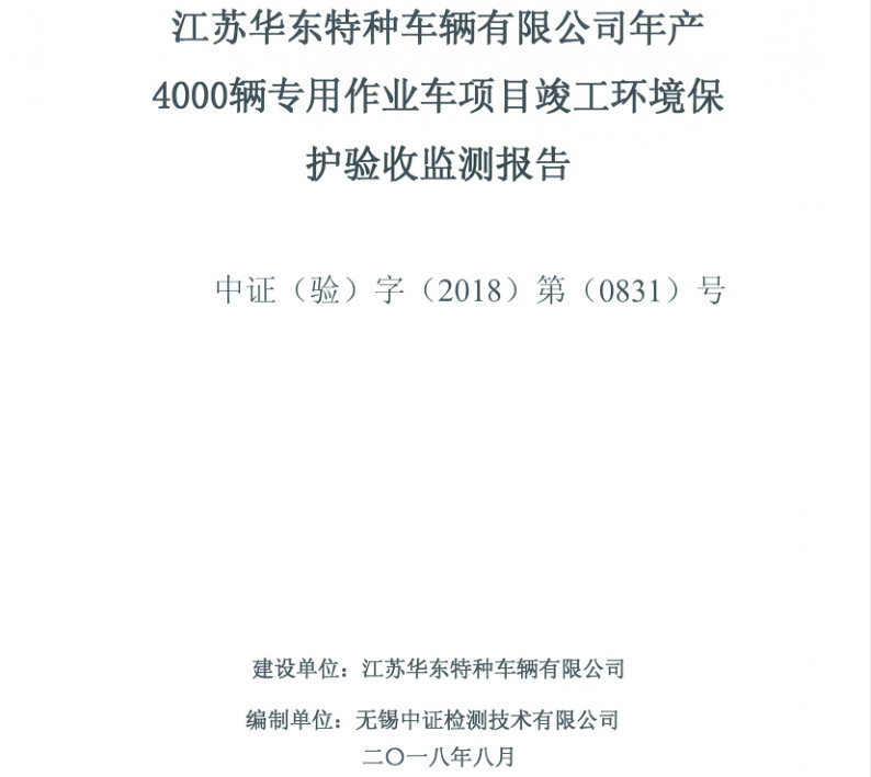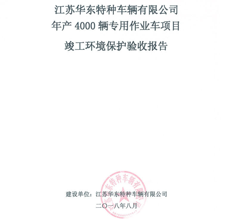 江蘇華東特種車輛有限公司年產(chǎn)4000輛專用作業(yè)車項(xiàng)目竣工環(huán)境保護(hù)驗(yàn)收?qǐng)?bào)告